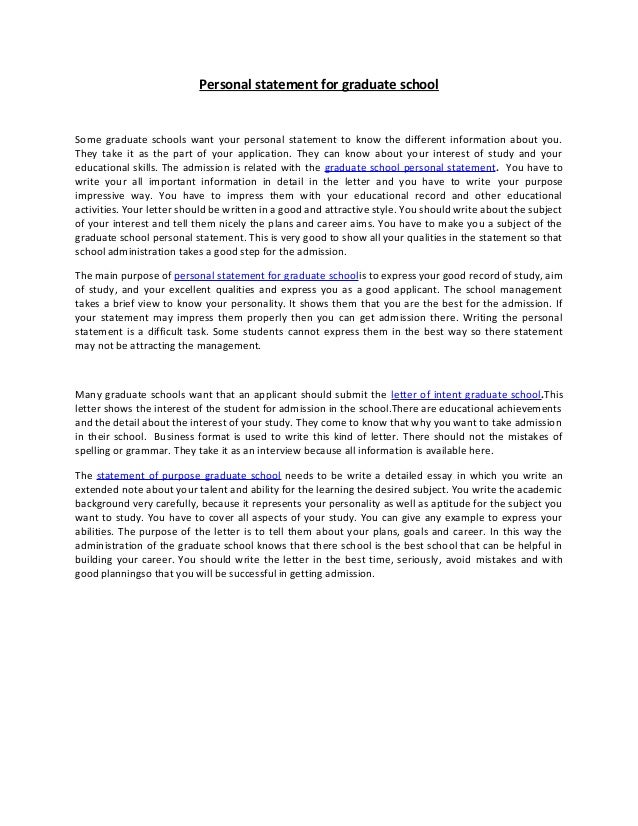 Jan 6, 2006 Your personal statement should clearly express your understanding of what graduate school is about and how the graduate degree will build